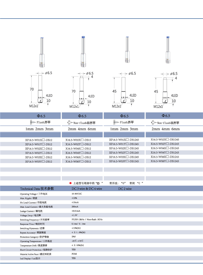 符合行业标准的 DC, AC 或 AC / DC 输出设计,可达4倍检测距离,更具性价比优势,产品系列包括圆柱型 齐平/非齐平;常开/常闭;出线式/插件式;